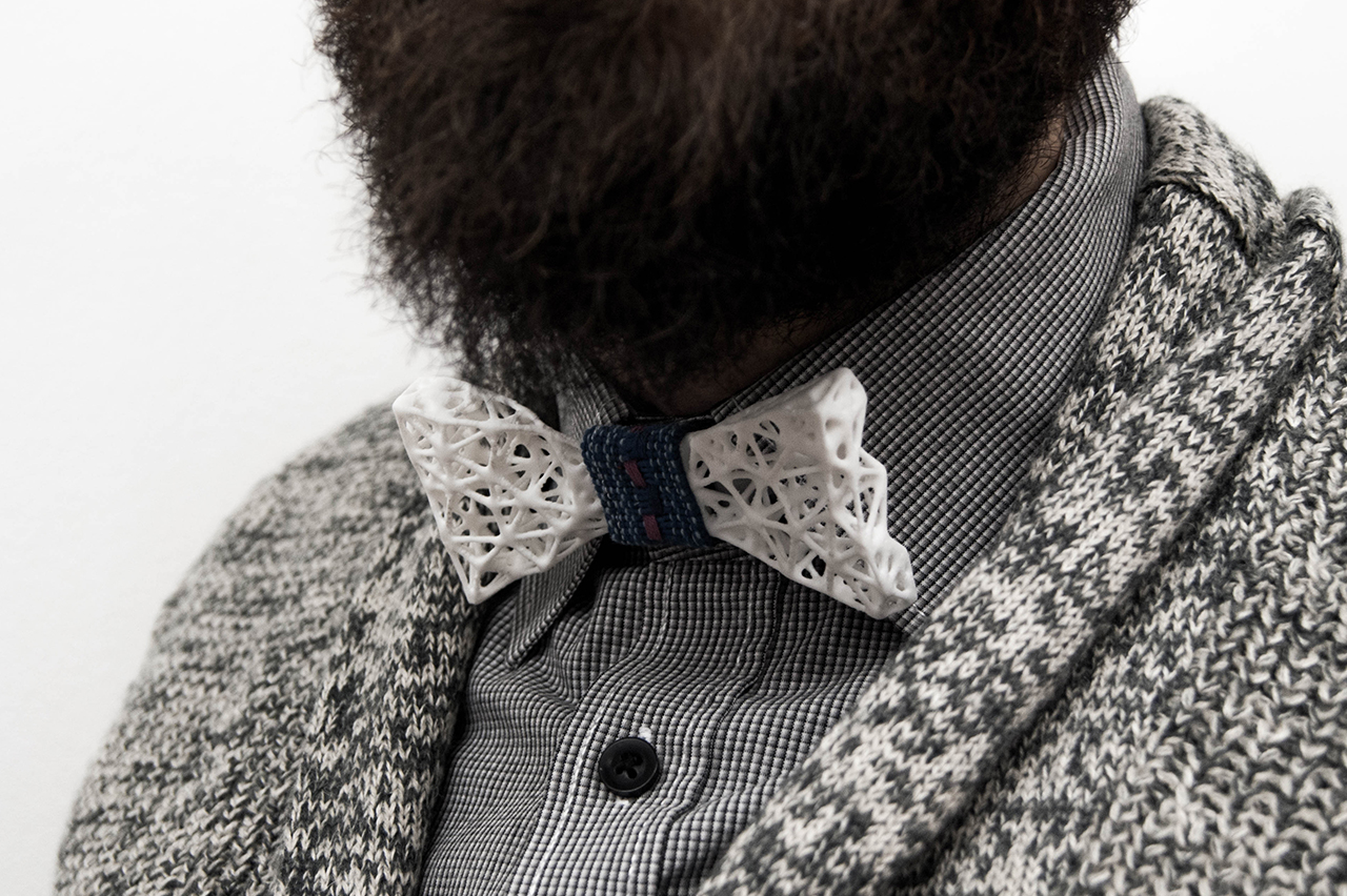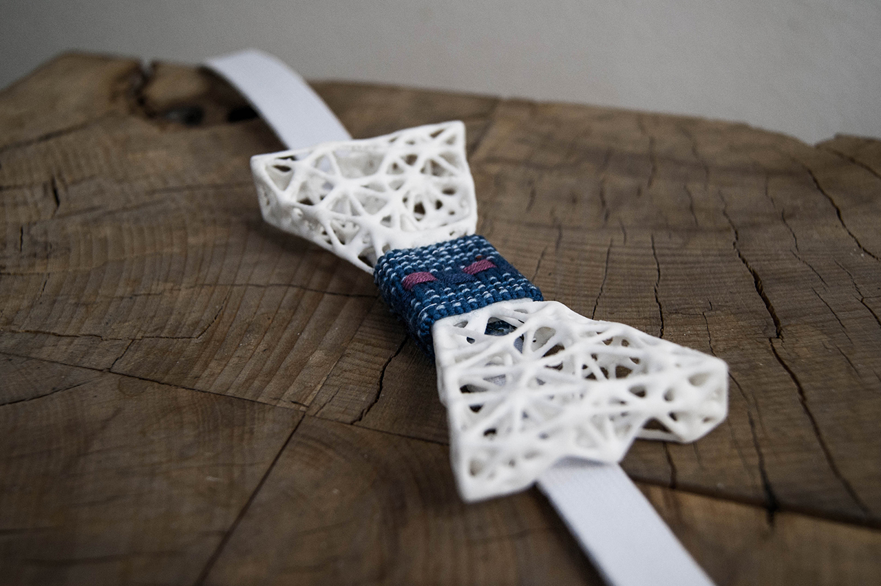 The output is a series of custom bow ties.