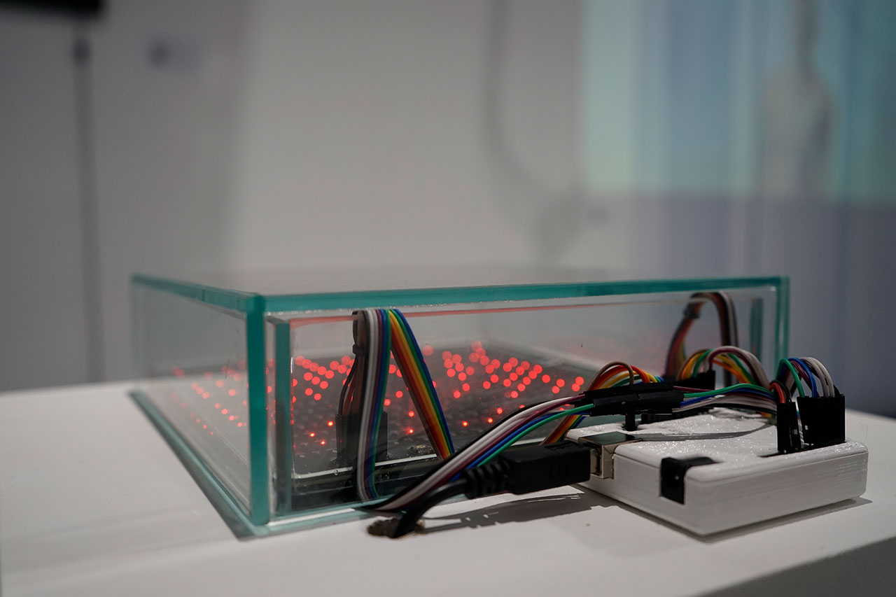 The collaboration of the digital with the analog requires us to redefine what the two terms refer to. The digital is about the translation of the real world to series of ones and zeros. But in order to create a collaboration with the digital we need to shift from the von Neumann Model of computation and think of the machine as a tabula rasa. A series of transistors that can run complex computations in a very specific way. This is only possible by redesigning hardware and software according to the problem. Thus the role of the architect is not only to create a design framework but rather to design a machine apparatus according to that framework. Therefore the digital is more targeted into very specific tasks while allowing for the flexibility to change the machine ontology throughout. On the other end, living matter is not confined within the bounds of the binary system but rather to analog gradients of data resulting in a new paradigm of computation where parameters do not need to be represented symbolically and problems are not solved through a series of step by step instructions, instead data are represented into a more natural form of spacial pattern. A computation system that continuously adapts to the patterns of the physical space until equilibrium is achieved. The analog has intelligence which in this case can be used in order to sense and compute physical space. Thus it is not only a computing apparatus but also a fabrication matter with embedded intelligence. This allows for material to adapt to its environment according to the way space is interfaced.