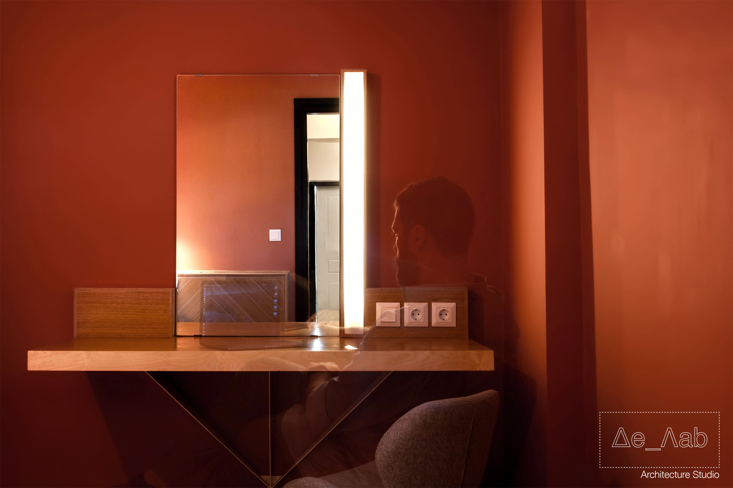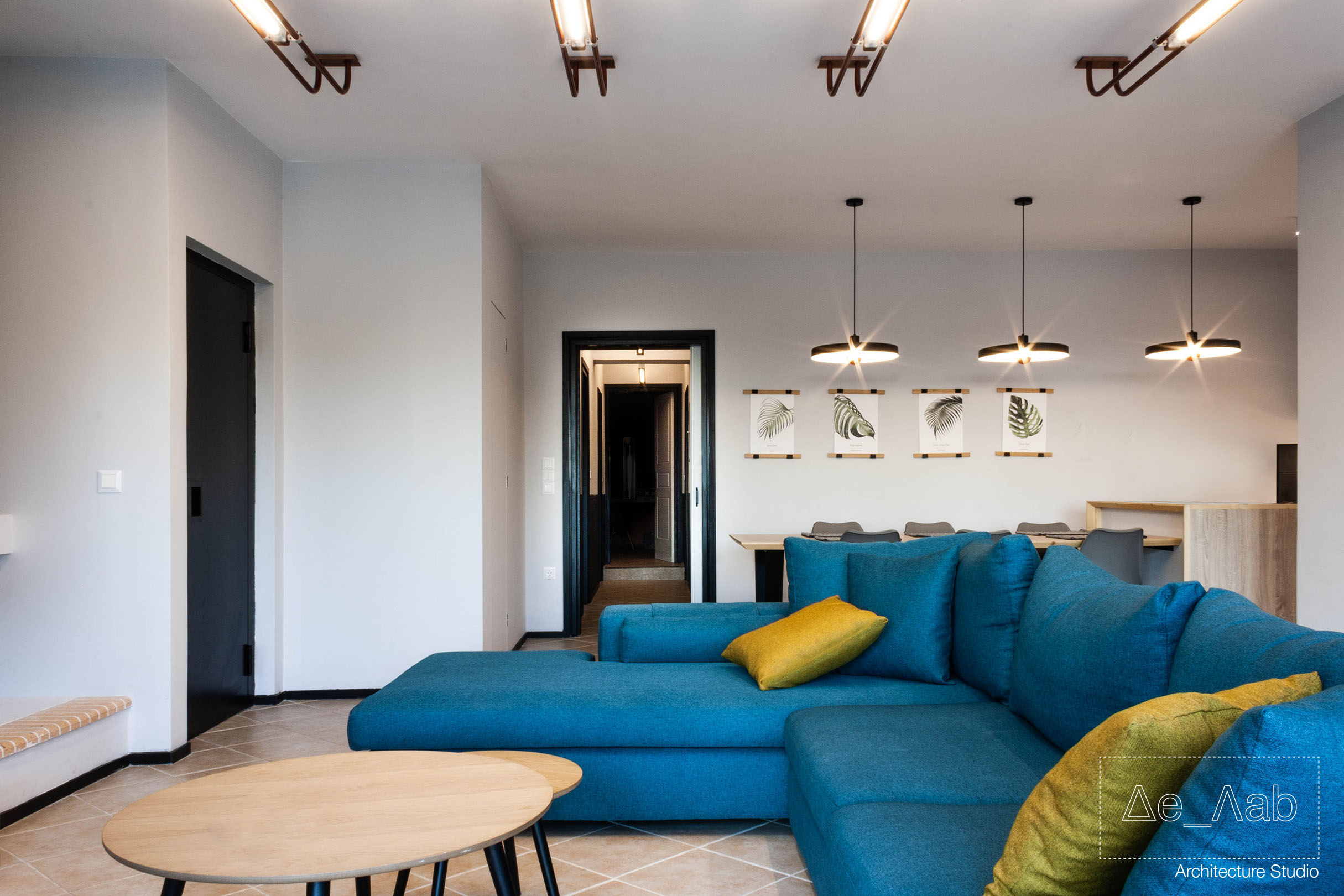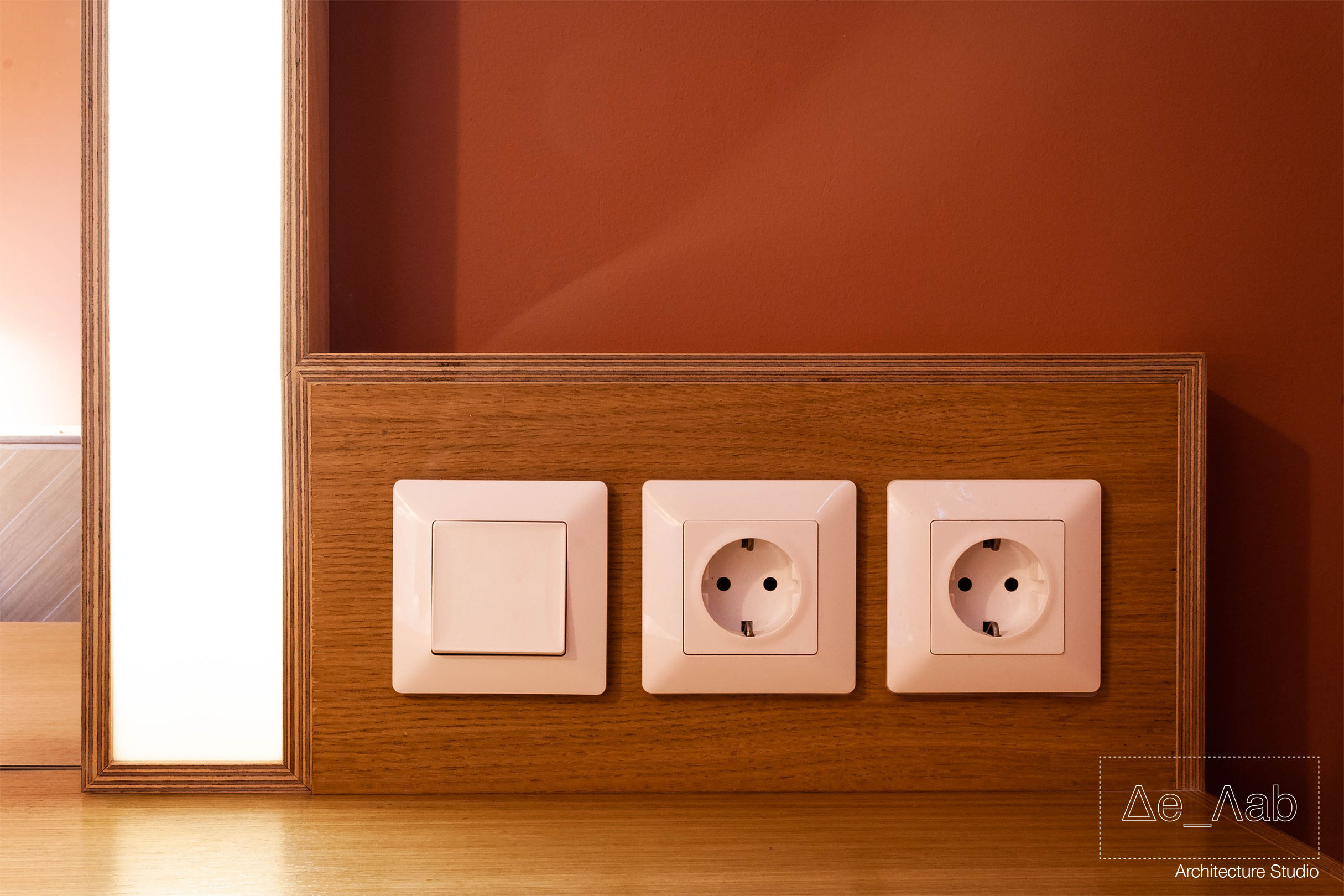 Δεδομένου πως ο χώρος είναι υπόσκαφος και τα μοναδικά μεγάλα ανοίγματα βρίσκονται στην μπροστινή όψη της κατοικίας δόθηκε ιδιαίτερη σημασία στον φωτισμό των επιμέρους χώρο ώστε να είναι επαρκής και ομοιογενής σε όλη την επιφάνεια των δωματίων.