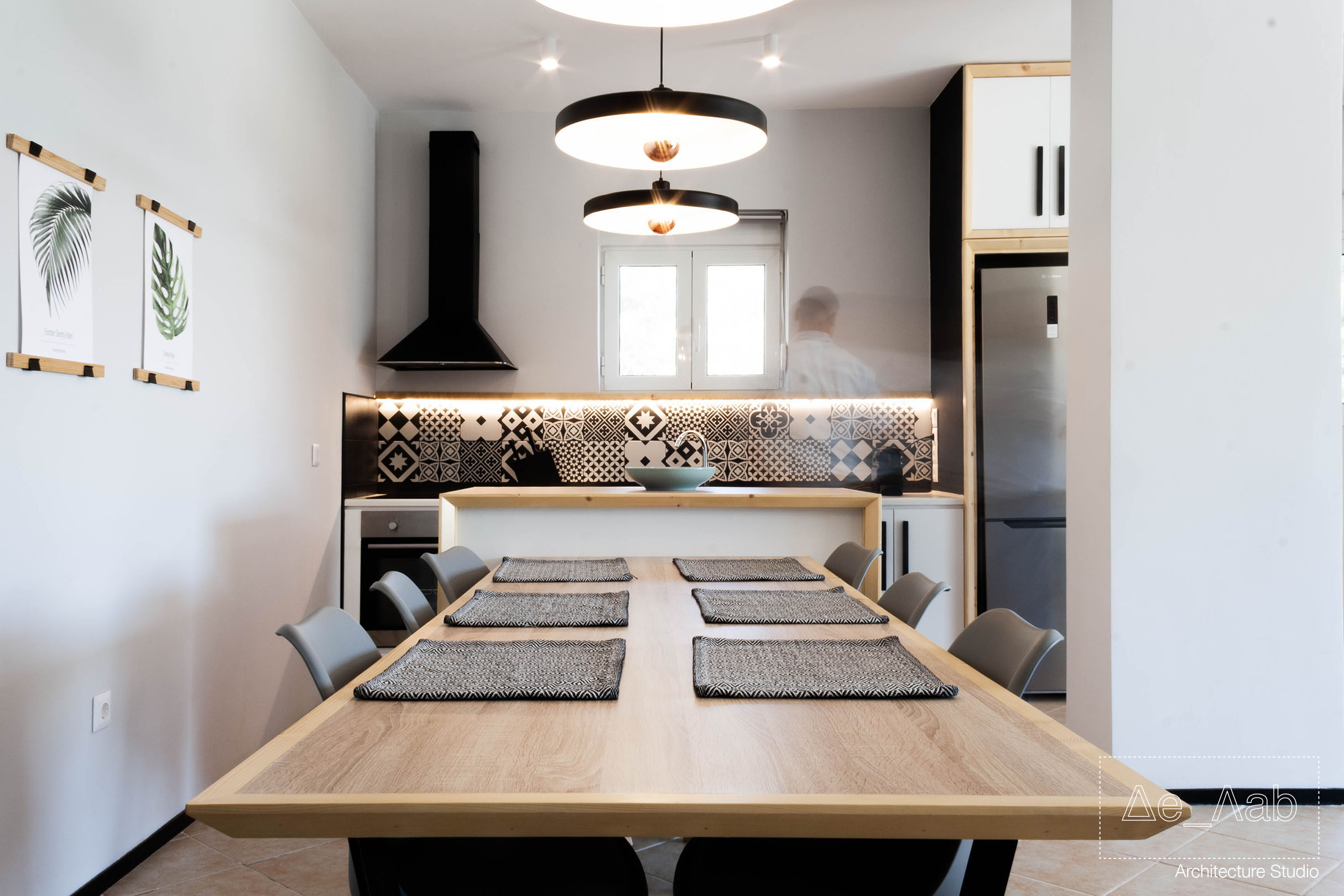 As the space is dug-out and the only large openings are on the front of the house, particular attention was given to the lighting of the individual space so that it was adequate and homogeneous throughout the room.