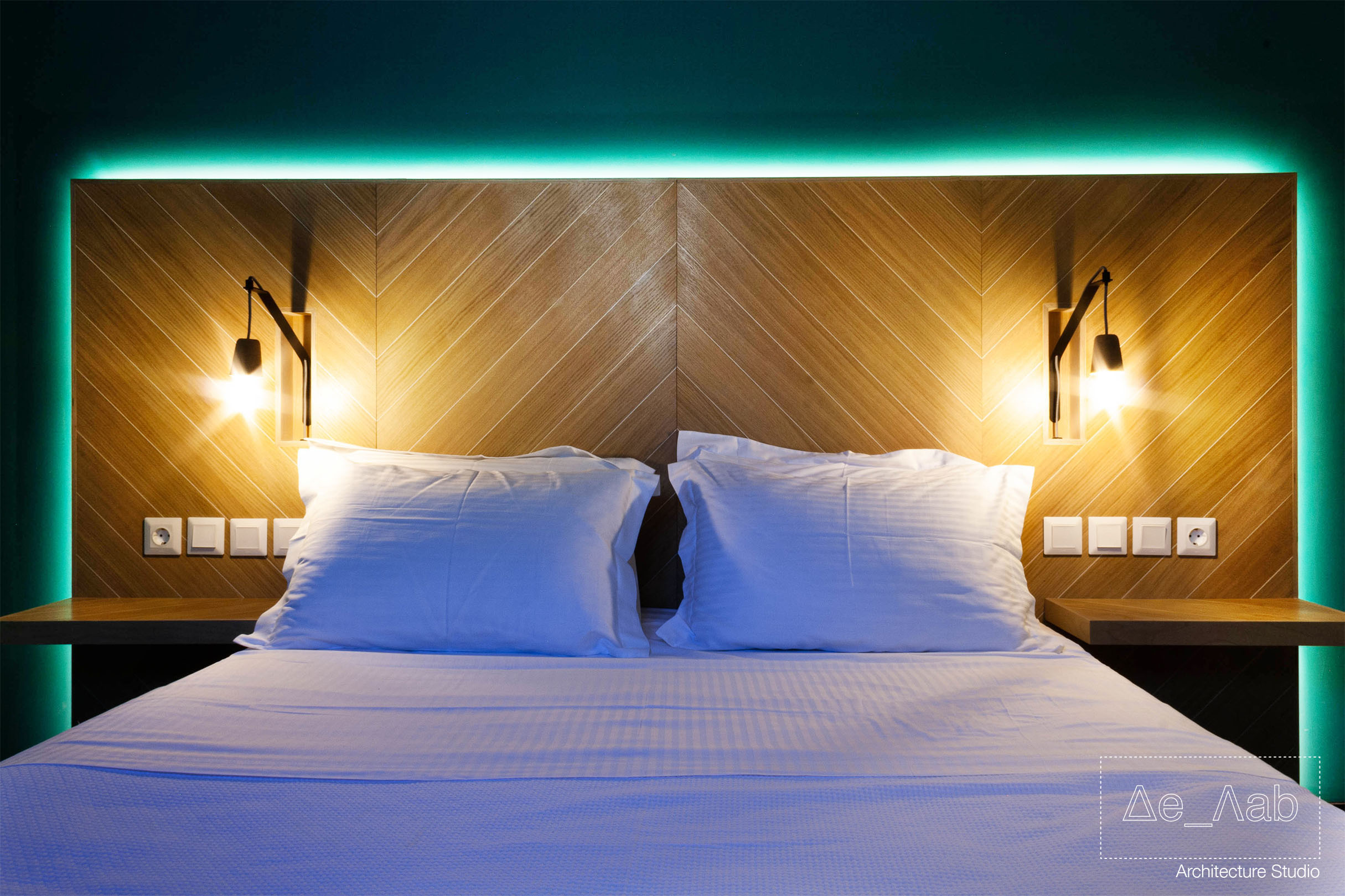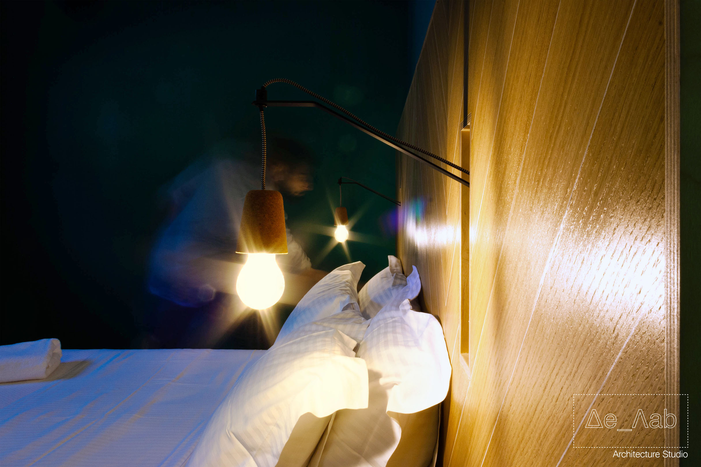 Ο φωτισμός του κεντρικού χώρου διημέρευσης επιλύθηκε με τρόπο τέτοιο ώστε να αποτελεί βασικό στοιχείο του χώρου ενσωματώνοντας στον σχεδιασμό την υψομετρική διαφορά του ταβανιού λόγω των φερόντων στοιχείων της κατασκευής του κτηρίου.