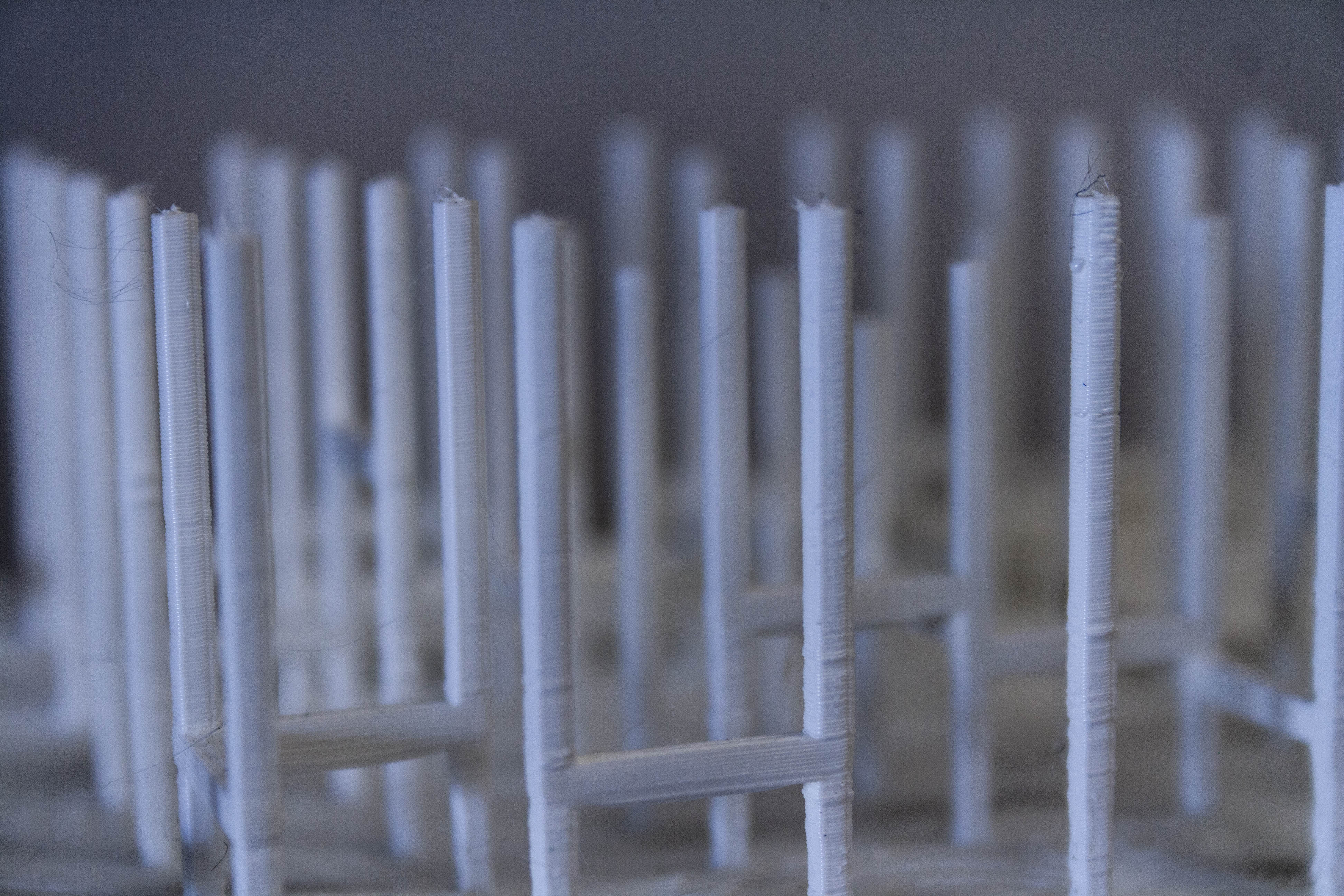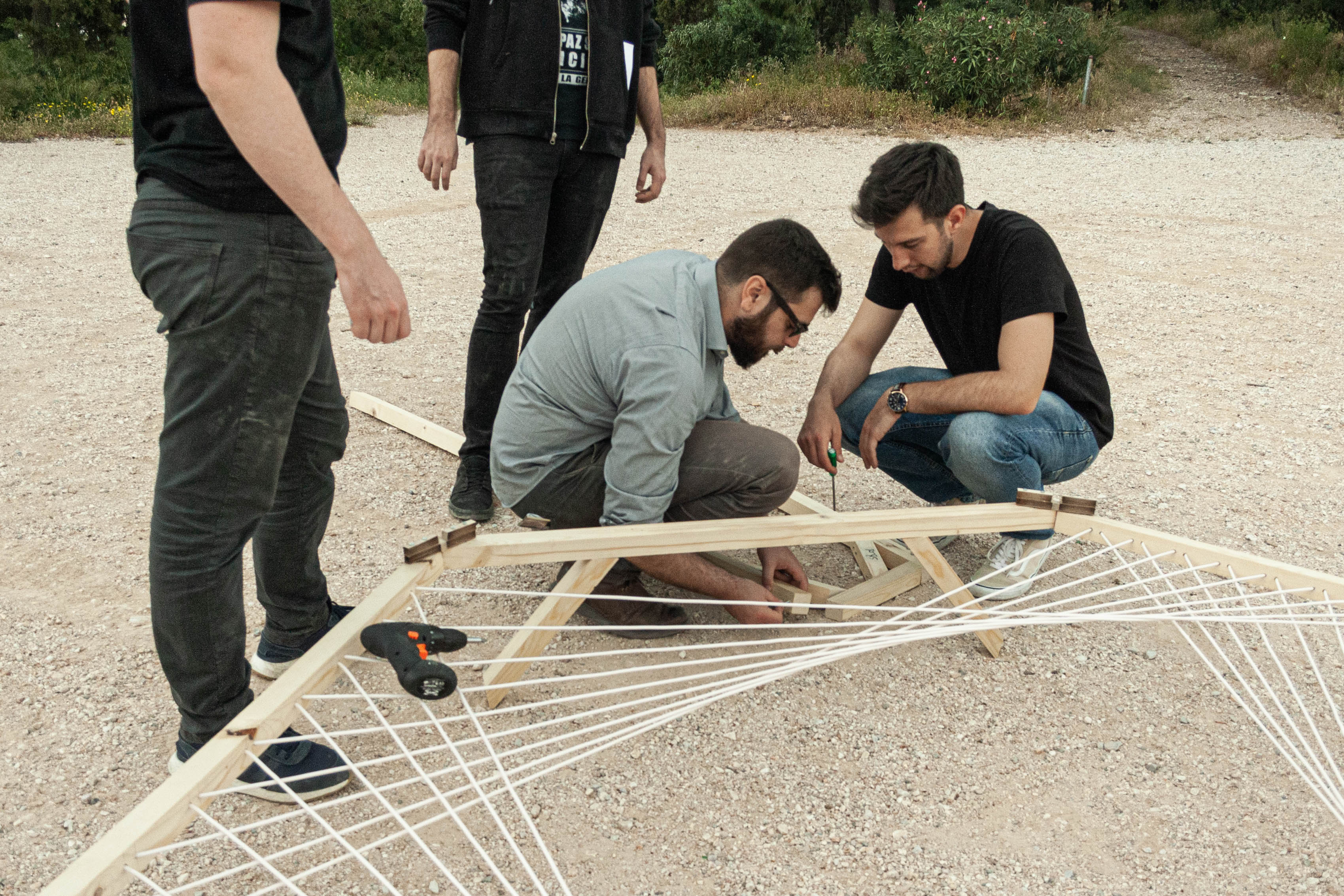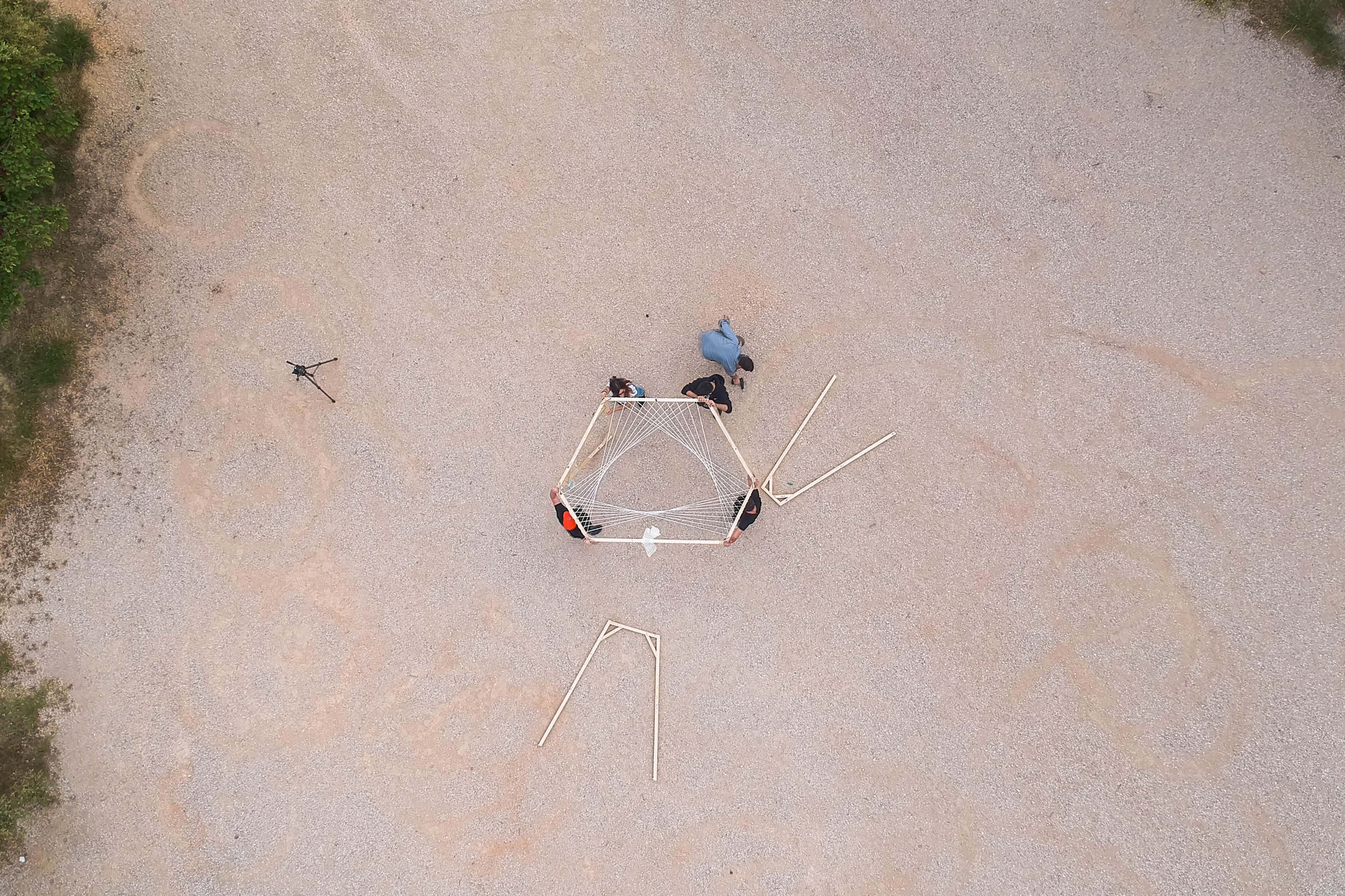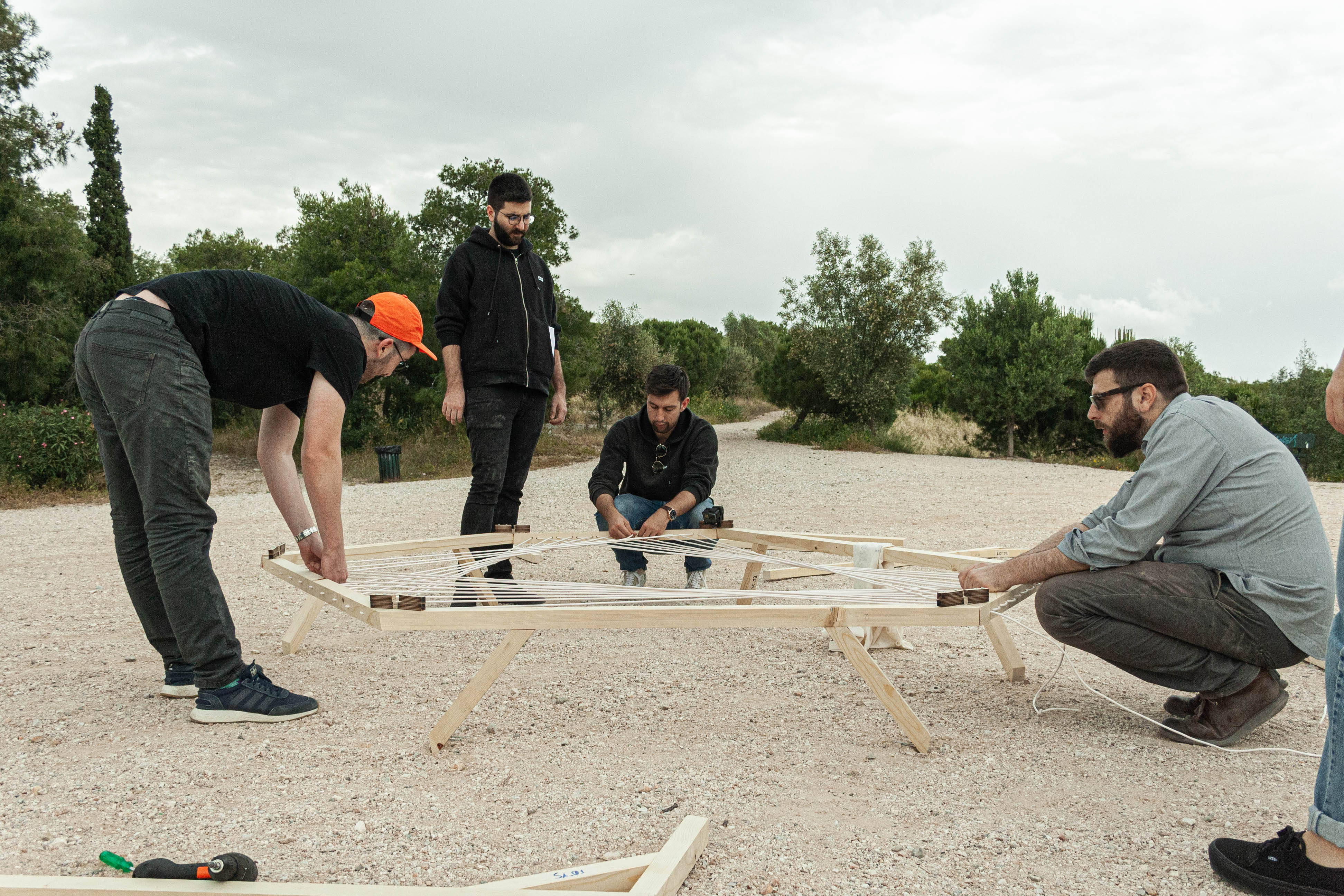 Η νέα χωρική πραγματικότητα τοποθετείται στα σημεία τομής του δικτύου των μονοπατιών. Το κεντρικό σώμα του σκελετού αποτελείται από τη σύνδεση ξύλινων στοιχείων με παραμετροποιημένη πλέξη νήματος στην άνω οριζόντια επιφάνεια. Το μέγεθος των ανοιγμάτων καθορίζεται συναρτήσει μίας προσαρμοσμένης μεθόδου αξιολόγησης της σημαντικότητας της ροής των μονοπατιών με βάση τα κοινωνικά φίλτρα των διαφορετικών ομάδων χρηστών που εξετάζονται.