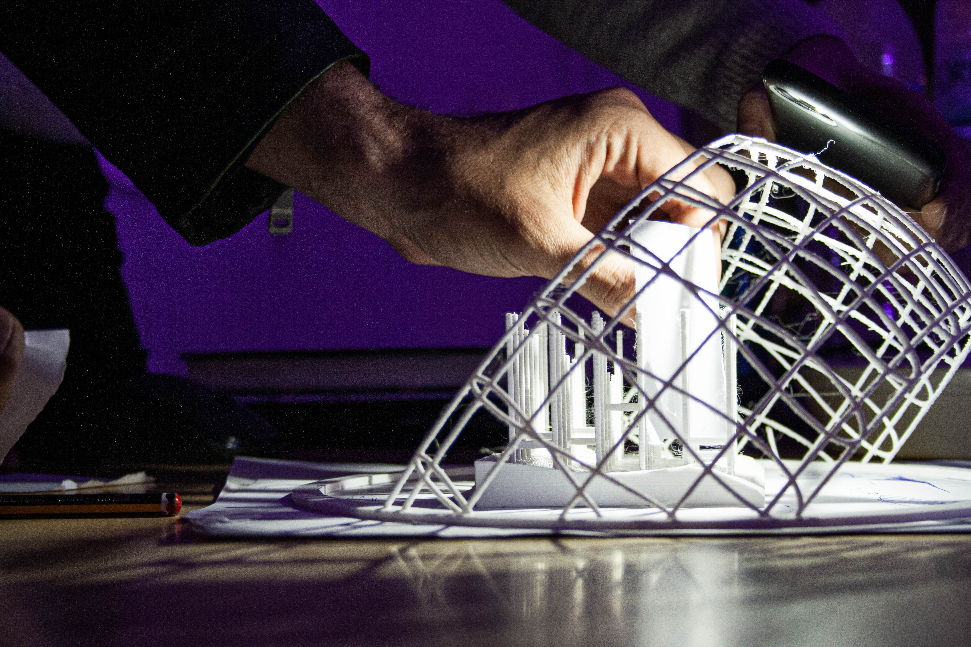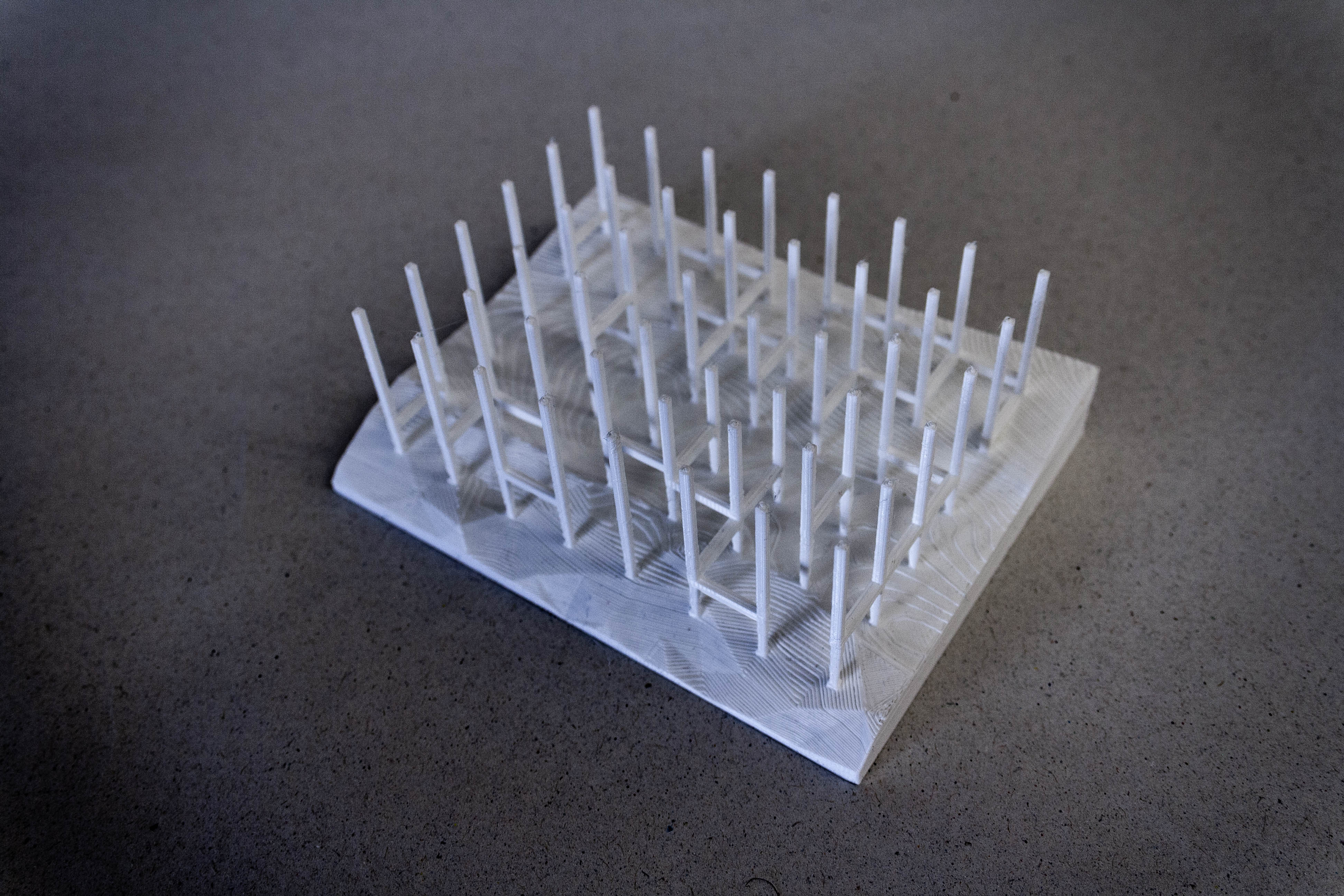 Πέρα από τα διάφορα σχεδιαστικά χαρακτηριστικά η δομή έπρεπε να μελετηθεί και κατασκευαστικά, καθώς το σχεδιαστικό αποτέλεσμα υλοποιήθηκε σε μακέτα κλίμακας 1:1, η οποία τοποθετήθηκε προσωρινά στον λόφο του Φιλοπάππου.