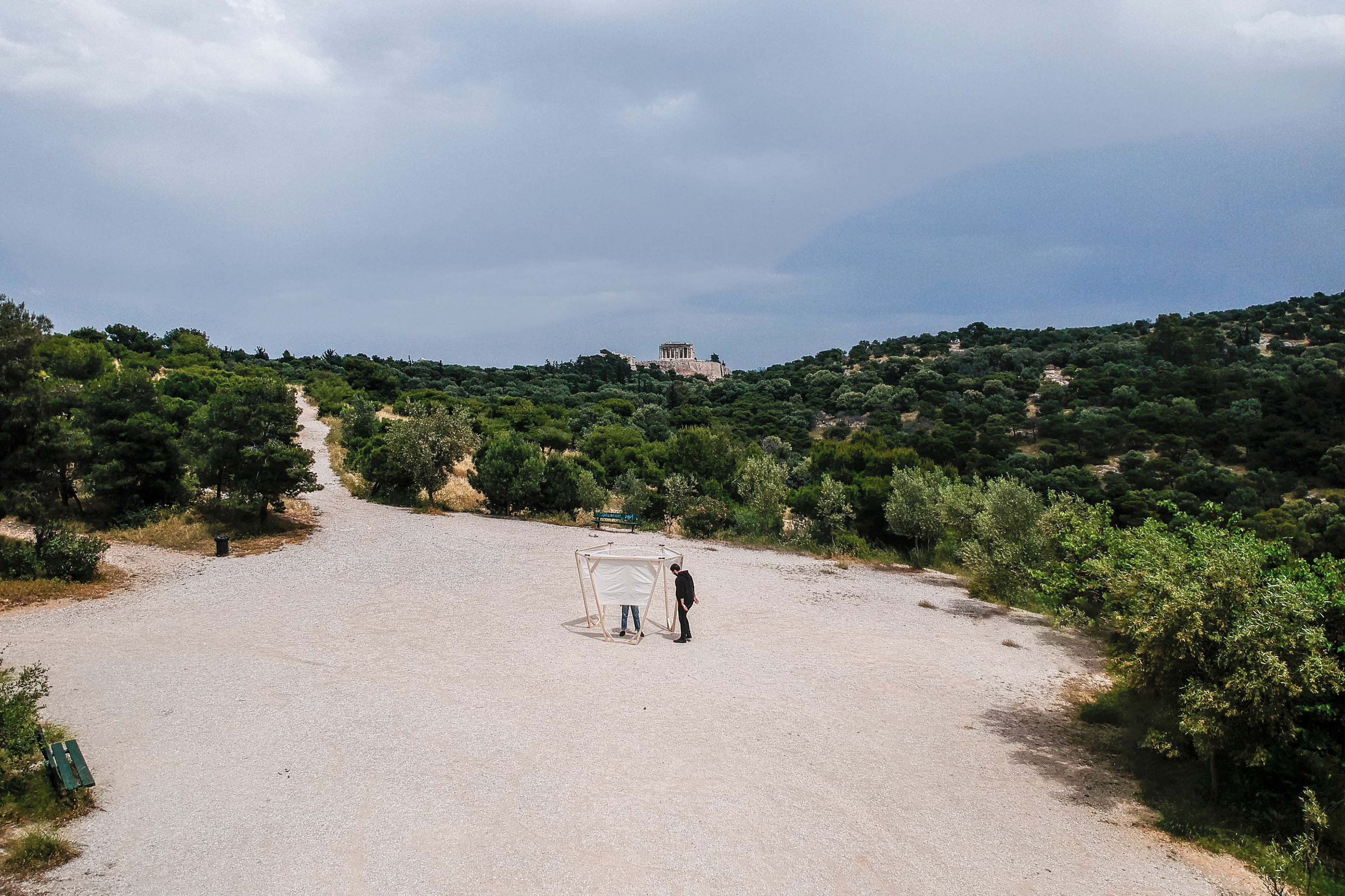 Beyond the various design features the structure had to be studied in terms of construction, while the design was built on a scale of 1: 1, which was temporarily placed on the hill of Philopappou.
