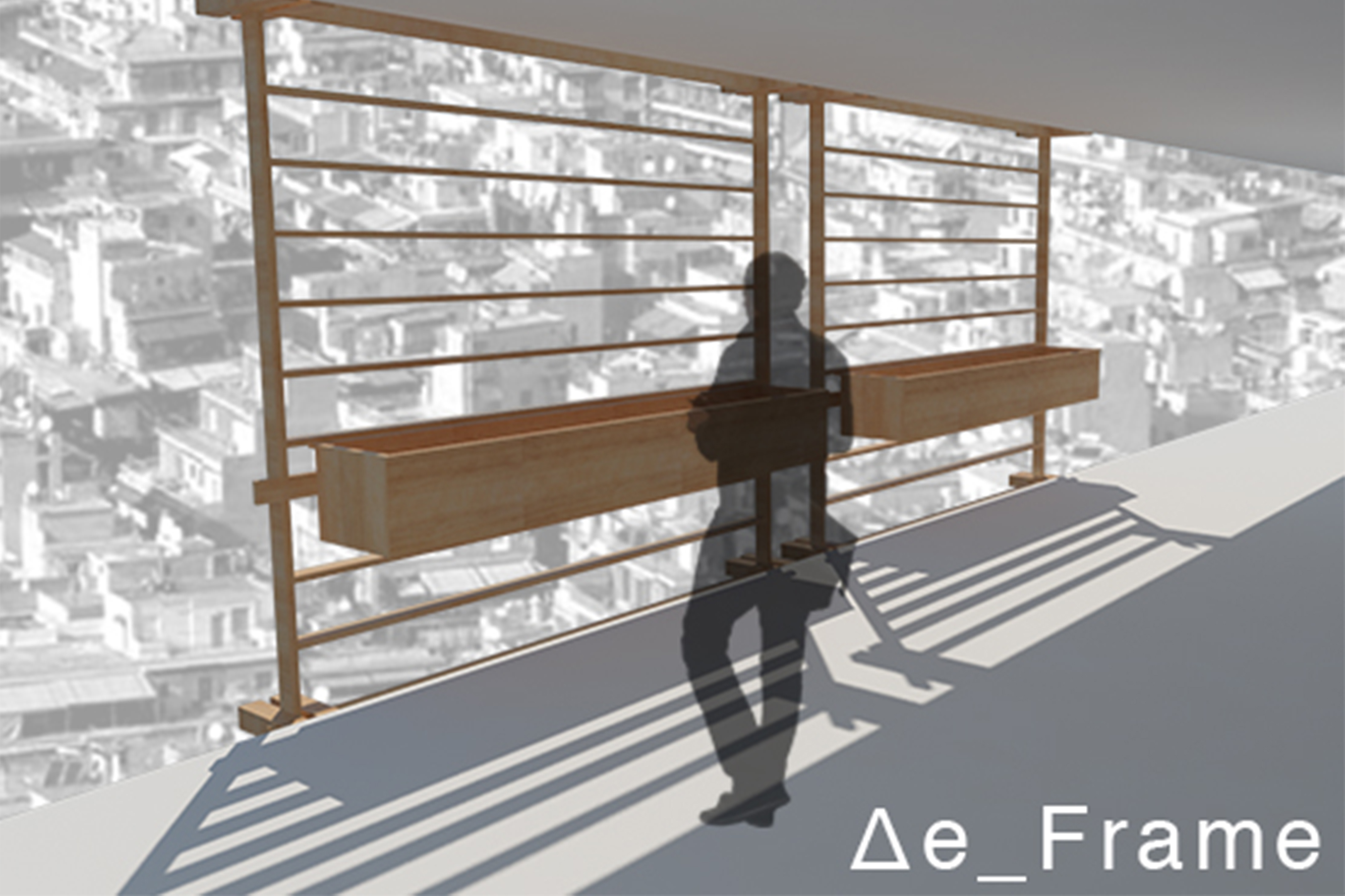 “The Frame” is a project about changing the image of our city. The city of Athens usually has a blurred image of an incomprehensible collage of the typical Athenian block of flats. Our proposal focuses on the creation of a changing façade zone that could be incorporated in every block of flats in the city in a DIY logic. It is composed by a simple wooden frame that works like a canvas. In that way, every citizen can rehabilitate his personal space and create something new. This frame could be constructed by used wooden pallets, and it could incorporate utilities for reuse of organic waste and object hanging possibilities. In that way, citizens could use different types of waste to “build” their own creative façade and add color to the city.