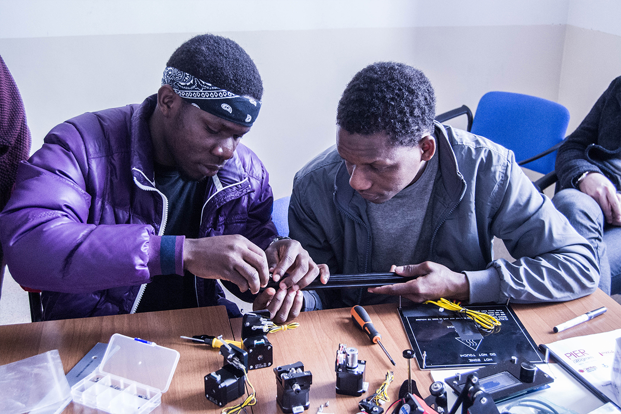 The great call we are seeing in PIER, with the support of the Coca Cola Foundation, is a world of new opportunities, a new way of doing things. Large-scale economies are starting to collapse, so we focus on projects such as Maker Spaces and Fab Labs. The people who turn to them may seem very different from each other, coming from very different places, but they are all equal to one concept: they are joined by their efforts and united with their common works. The impres2o workshop is one of the projects for refugees in Greece, Italy and Austria, aiming to integrate immigrants into the local community through profecional and artistic training.