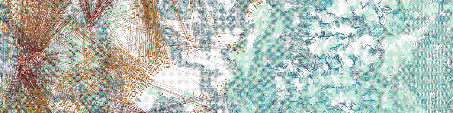 In this design studio, the students tested the potential to bring at the core of architectural novelty the interdependence of digital and biological intelligence, by pairing algorithmically drawn with biological growth networks. The students tried to simulate the capacity of living systems in the process of growing and becoming part of a new urban bio-digital infrastructure or Wet.Ware. Finally, the students trained the re-greening sensibility to transform the urban landscape of Guatemala City, recognising opportunities across scales, materialities and technological regimes thus expanding the city’s repertoire of aesthetic qualities.These emerging qualities will be a measure of the progressively higher degrees of synthesis the students established among the heterogeneous systems of Guatemala City, reflecting an enhanced communication across its human and non-human realms. The students introduced new spatial metrics to measure the city’s self-sufficiency, valuing what economists call “externalities” towards other social and ecological systems. The final ambition is to propose new models for the complete re-metabolisation of the city in an attempt to solve the current critical impact it is having on its surrounding environment.